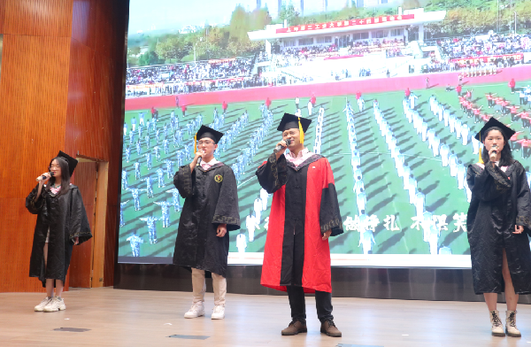纪念视频《我们毕业啦》回首毕业生大学四年生活,充满温馨的回忆,伴随着主持人宣布典礼开始,全体师生起身奏唱国歌,在庄严肃穆的国歌声中毕业典礼拉了开帷幕。