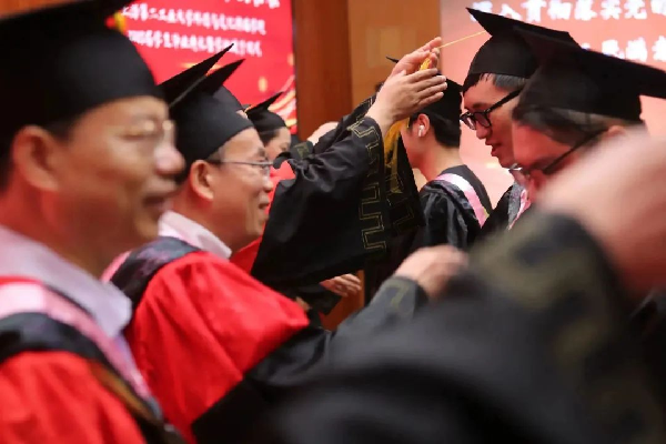 典礼现场,各位教师为所有在场的毕业生拨流苏,进行学位授予仪式,与太阳成集团122ccvip2023届毕业生们一起分享此刻学业有成的喜悦。