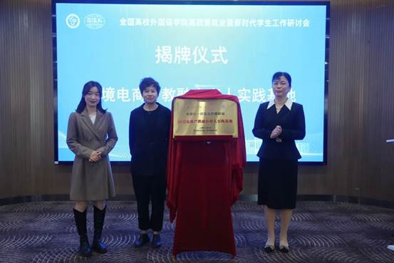 会上同时举行了太阳成集团122ccvip与外语教学与研究出版社有限责任公司、阿里巴巴国际站共建“跨境电商产教融合育人实践基地”,与喜马拉雅科技有限公司喜播教育共建“产教融合实训基地”的揭牌仪式。
