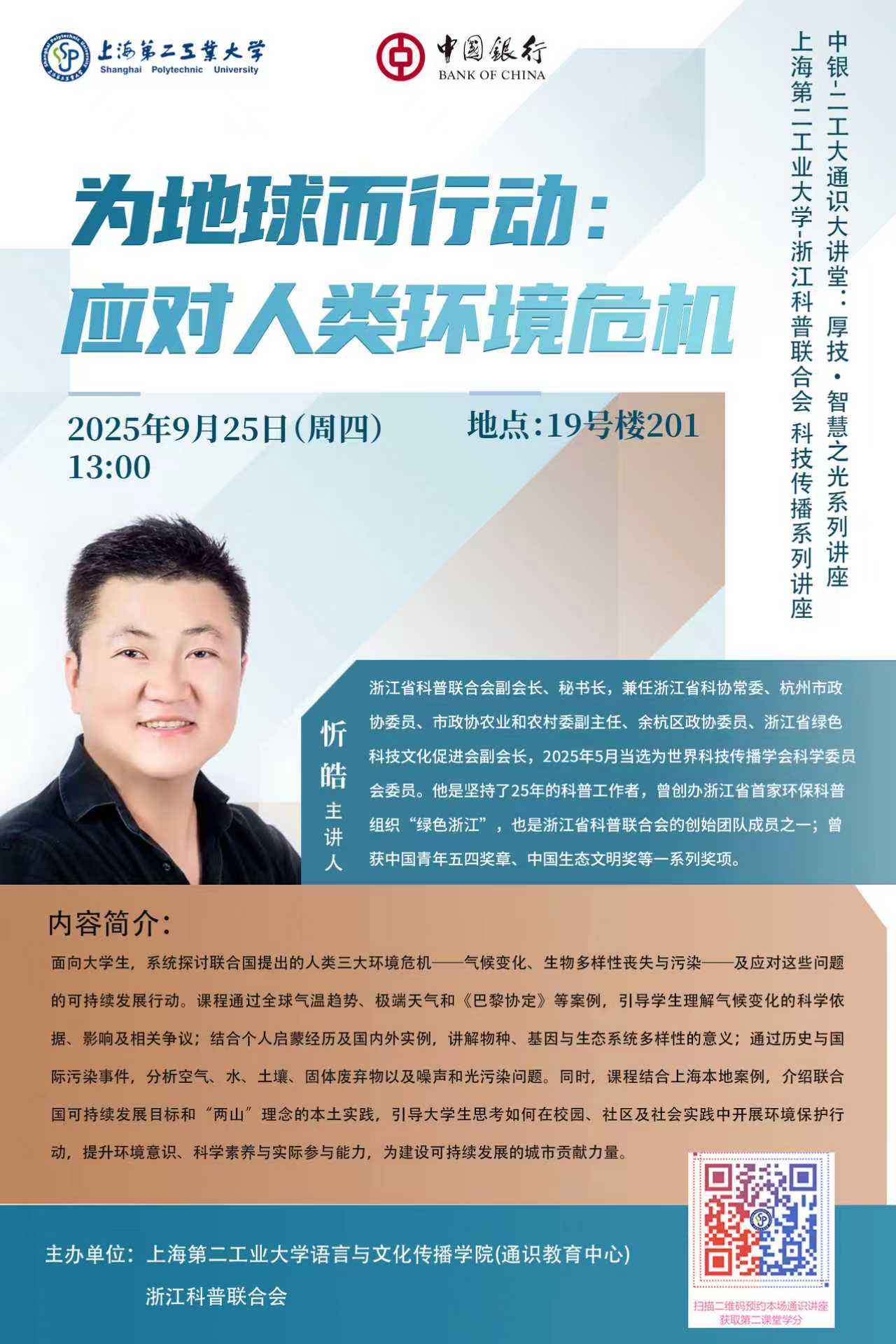讲座题目:为地球而行动:应对人类环境危机
