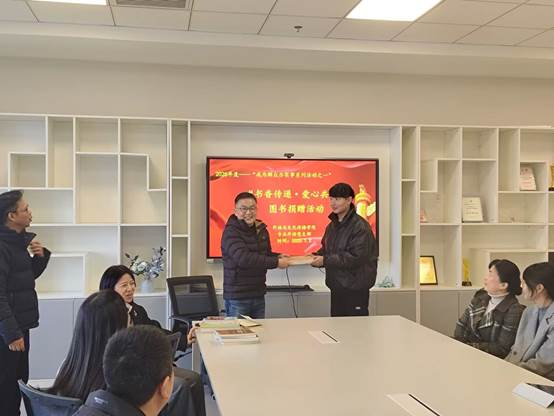 On January 2, 2025, the Party Branch of the Department of Foreign Languages held the launching ceremony of the book donation activity of Book Scent and Love Sharing in the graduate study room. Party Secretary Gu Xiankai and President Professor Zheng Peiyun attended the meeting. the meeting was presided over by Party Secretary and jointly attended by Party Committee members, Party member teachers and graduate student representatives.