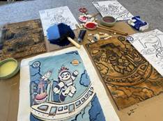From the initial preparation to the final presentation, each step is full of challenges and surprises. I remember that in May this year, the Little Leafs of the Qingshi Studio formed the Search for the City Memory, Inherit the Culture of the Shanghai Style, the Shanghai Primary School woodblock New Year painting non-genetic team. Through in-depth practice, such as data investigation and non-genetic study, we deeply understand the art value and inheritance predicament of Shanghai Primary School Woodcut New Year Painting. Therefore, from July, we started the re-creation of woodblock New Year pictures with our reverence and love for traditional culture.