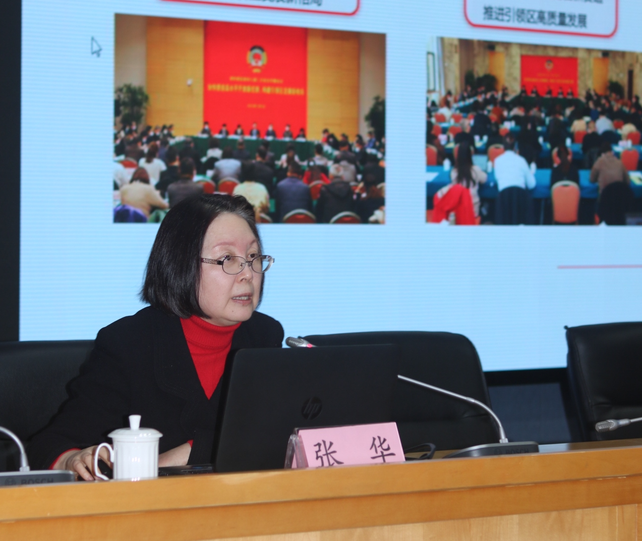On March 13, Zhang Hua, a deputy to the 16th Shanghai Municipal People's Congress and full-time deputy secretary-general of the Shanghai Pudong New Area Committee of the CPPCC, professor, chief physician and doctoral supervisor of the medical school of Tongji University, At the invitation of the School of Foreign Language and Cultural Communication (General Education Center), we gave a general education lecture entitled Approaching the CPPCC to the teachers and students of our school, which was presided over by Zheng Peiyun, President of the School of Foreign Language and Cultural Communication.